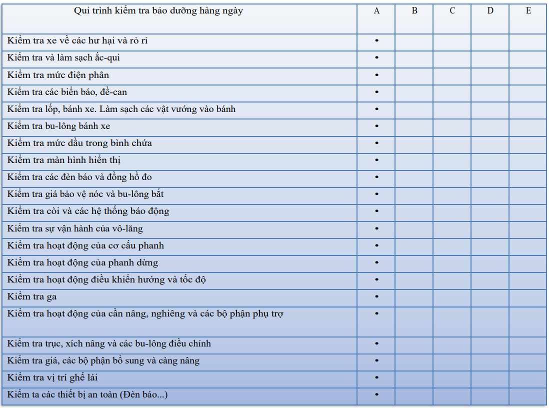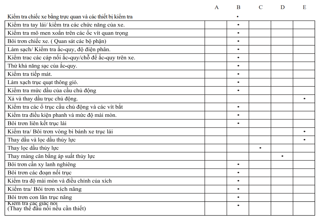 4.2 Kiểm tra xe nâng định kỳ và lên kế hoạch bảo dưỡng: