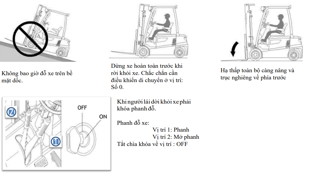 * Luôn luôn để xe nâng ở điều kiện an toàn.