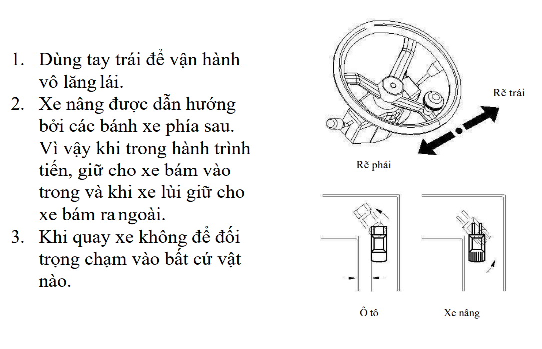 3.4. Chuyển hướng xe nâng điện đúng cách: