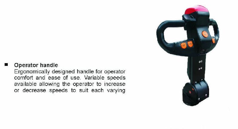 Xe sử dụng năng lượng điện cho toàn bộ các hoạt động bao bồm: di chuyển và nâng hạ hàng hóa. Người lái xe nâng tay Heli chỉ cần di chuyển theo xe bằng một cần điều khiển tích hợp các thao tác lái xe và nâng hạ hàng hóa.
